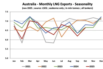 Australian LNG exports slipped again in 2025, with year-to-date shipments down 2.8% compared with the same period last year, according to LSEG seaborne LNG data. The slowdown leaves Australia further behind the US and Qatar, which have expanded output and strengthened their positions in the global LNG market. Global LNG Read more