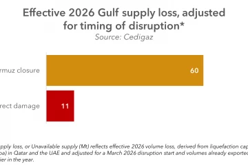 The LNG supply gap is emerging as Gulf disruption removes significant volumes from the market, with outages at Qatar’s liquefaction facilities taking around 12.8 mtpa offline, equivalent to roughly 17% of its capacity. Estimated LNG supply loss in 2026 from Gulf disruption, including Hormuz closure and direct damage At the Read more